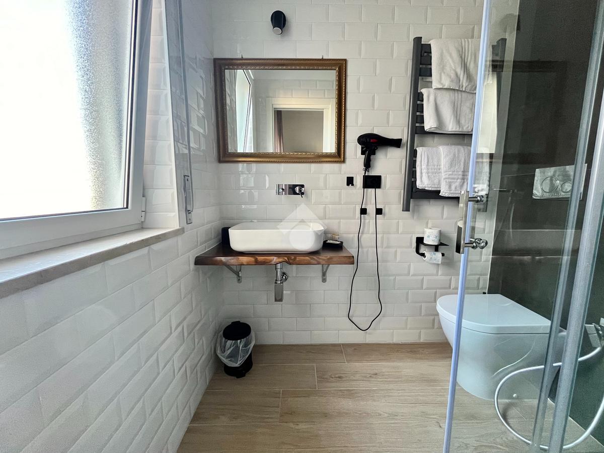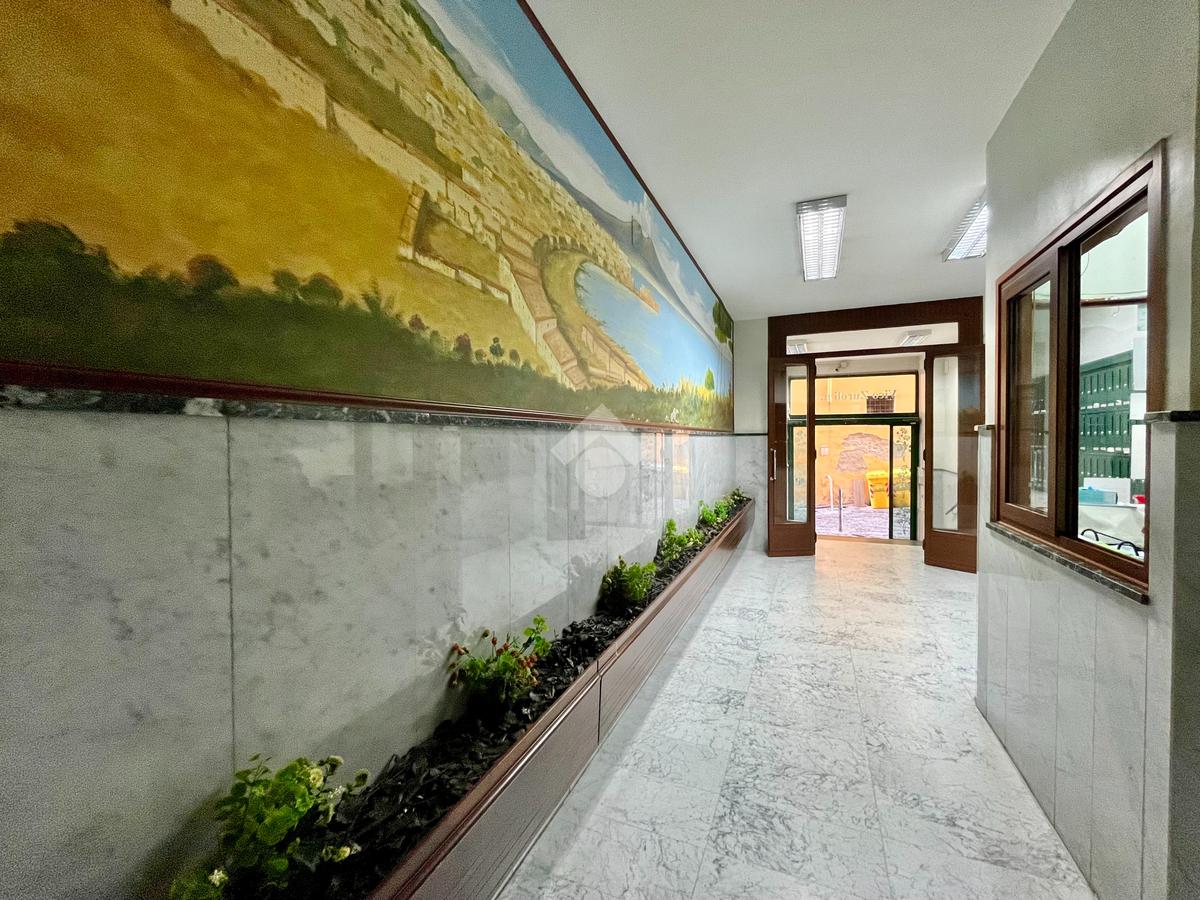 Il palazzo, completamente ristrutturato, è realizzato in solido cemento armato, garantendo la massima sicurezza e durabilità. Il doppio ascensore e il servizio di portineria assicurano comfort e praticità ogni giorno.